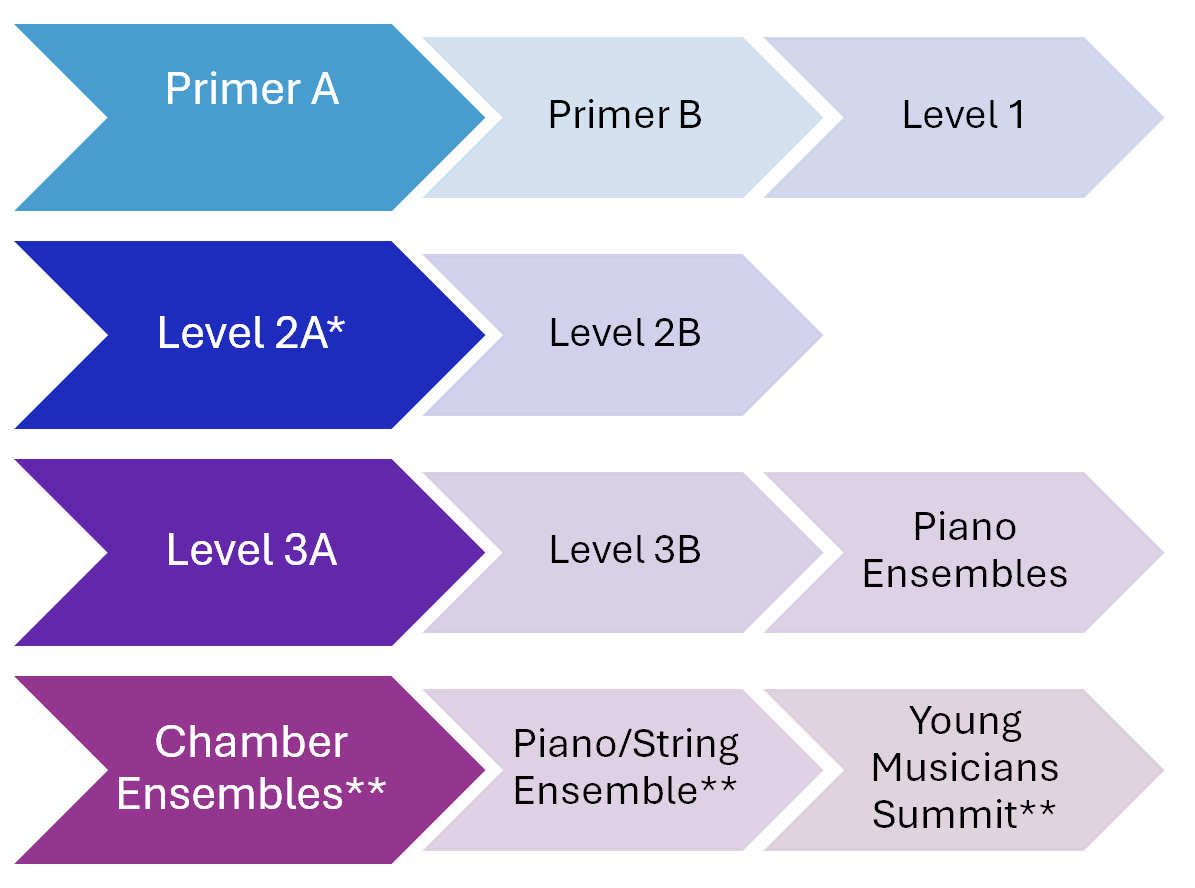 Attendance is very important. The piano program cannot be as successful as it is without the commitment of the students and families. Every time a student is in class, they receive group and individual instruction, peer attention and feedback, performance opportunities, and time to complete written theory assignments. All content is important and deserves time and attention.