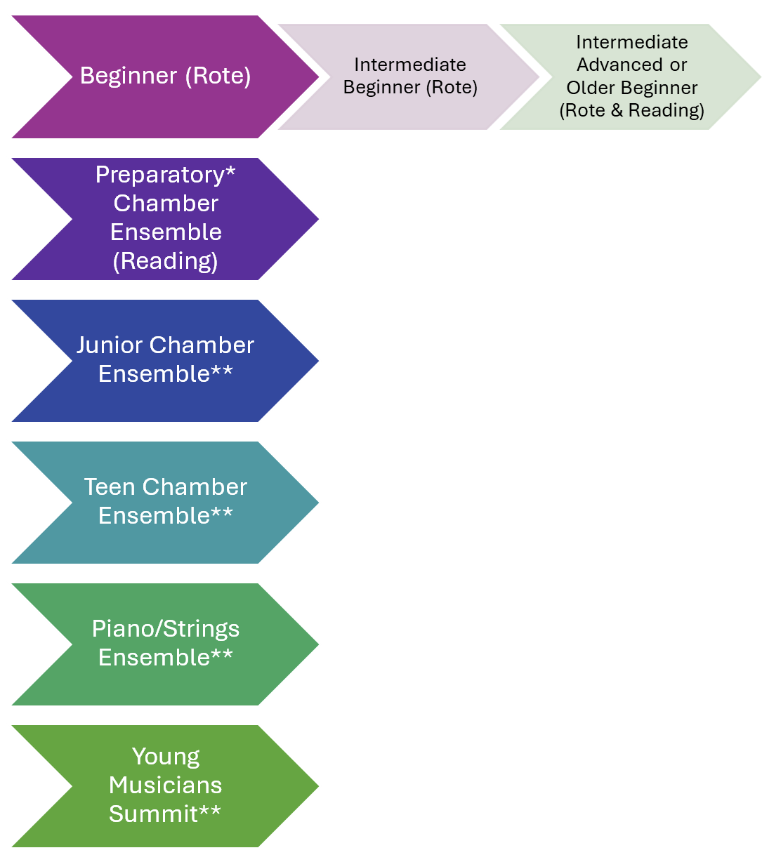 Below we have provided a guide to our curriculum trajectory that will explain how classes and program offerings lead to more advanced experiences.